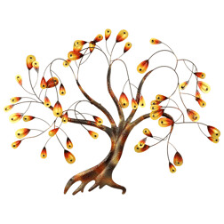 Strom kovový - nástěnná dekorace, s hruškami, oranžovo-hnědý