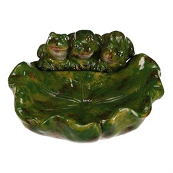 NovinkaPítko/krmítko - keramické, tvar list, se třemi žábami, barva zelená