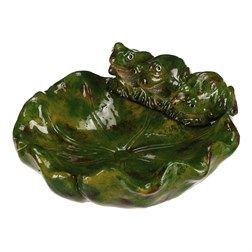 NovinkaPítko/krmítko - keramické, tvar list, s dvěma žábami, barva zelená