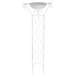 Krmítko/pítko - kovový zápich, mřížka, miska s ptáčky, měděné