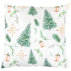 Polštář s výplní, satén. Vánoční motiv, stromek na bílém podkladu. 45x45 cm.