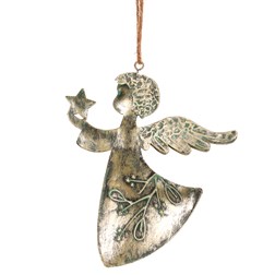 Anděl kovový s hvězdou - závěsný, vel. M, barva zlatá-antik