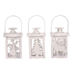 Lucerna kovová se stromky - čtyřboká, bílá, cena za sadu 3 ks