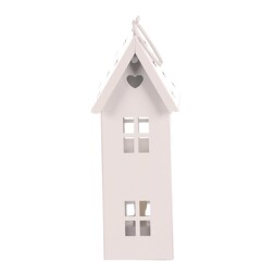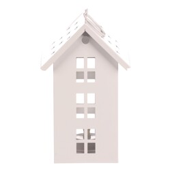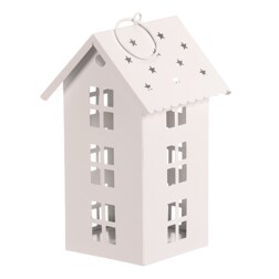 Lucerna mini - kovová, LED svíčka, patrový domek, bílá