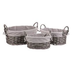 NovinkaKoš proutěný - oválný, s látkou, šedý, cena za sadu 3 ks