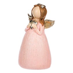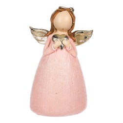 VýprodejAnděl - polyresin, růžový se zlatým srdcem