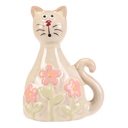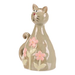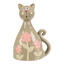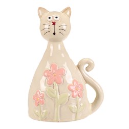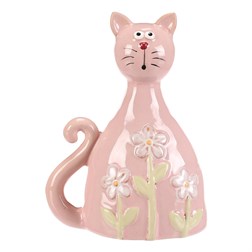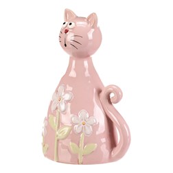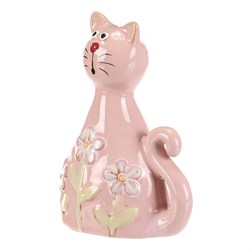 NovinkaKočka - keramická figurka, dekor květin, vel. L, růžová
