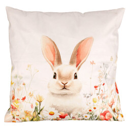 NovinkaPolštář s výplní - zajíc v rozkvetlé louce, sametový, 45 x 45 cm