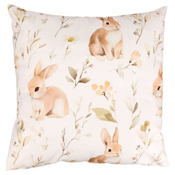 NovinkaPolštář s výplní - zajíci a květiny, sametový, 45 x 45 cm