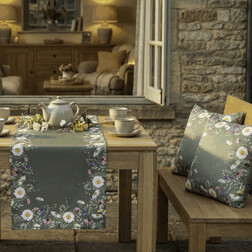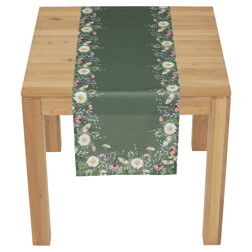 NovinkaBěhoun - vzor lučních květin, zelený, 100 % polyester, 40 x 150 cm