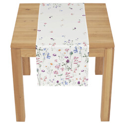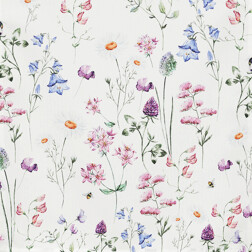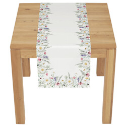NovinkaBěhoun - barevné luční kvítí, bílý základ, 100 % polyester, 40 x 150 cm