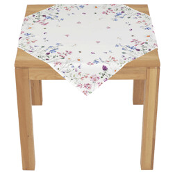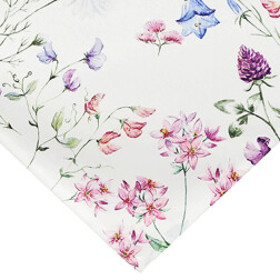 Ubrus - motiv lučních květů, 100% polyester, 130 x 160 cm, bílý