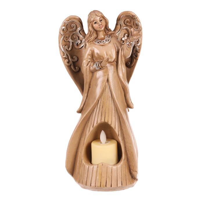Anděl pietní - polyresin, LED svíčka, béžovo-hnědý