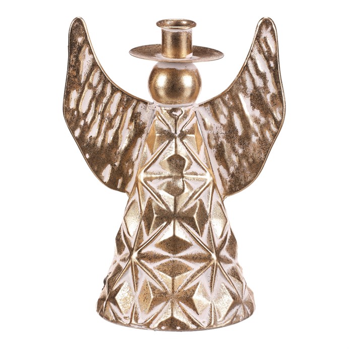 Anděl kovový - 22 cm, na kónickou svíčku, zlatý