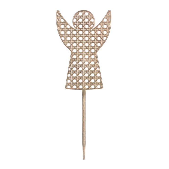 Kovová dekorace ve tvaru anděla a ve formě zápichu je krásným doplňkem zejména vánoční výzdoby. Díky jemným kruhovým otvorům a champagne odstínu, působí lehce a elegantně. Skvěle se hodí do květináčů, mezi rostliny nebo jako součást nejrůznějšího svátečního aranžmá.