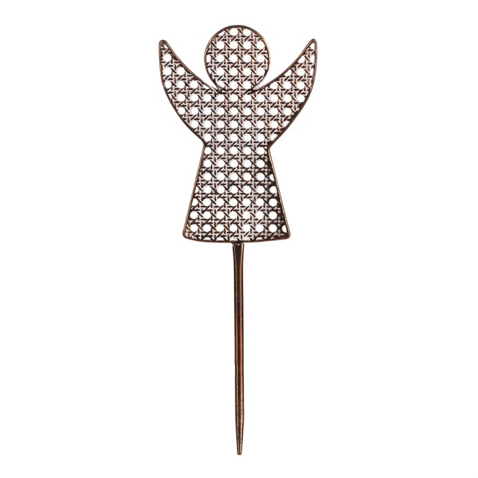 Kovová dekorace ve tvaru anděla a ve formě zápichu je krásným doplňkem zejména vánoční výzdoby. Díky jemným kruhovým otvorům a měděnému odstínu, působí lehce a elegantně. Skvěle se hodí do květináčů, mezi rostliny nebo jako součást nejrůznějšího svátečního aranžmá.
