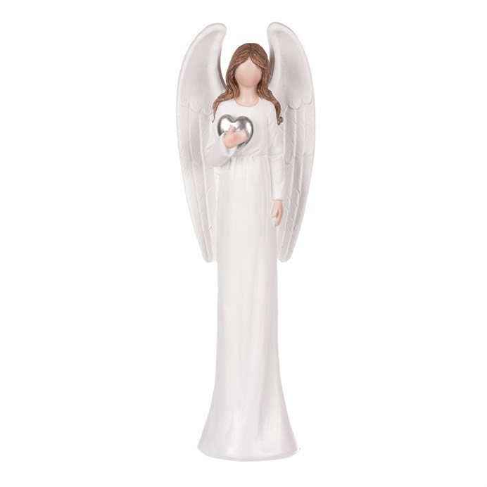 Podlehněte jemnosti a kráse této dekorační sošky anděla z polyresinu se srdíčkem v rukou. Přidejte tím dotek duchovnosti a elegance do vašeho prostoru a nechte jej vynikat na poličce, komodě nebo na jiném vhodném místě, kterému chcete dodat zvláštní význam. Anděl symbolizuje lásku a emocionální naplnění a jeho přítomnost vytváří atmosféru ochrany a péče, jenž nám připomíná důležitost lásky a soucitu v našem životě. Ať už hledáte duchovní poselství, pocit klidu nebo prostě krásnou dekoraci, přidejte do svého prostoru tento výrazný symbol lásky a nechte se obklopit jeho magickým vlivem. Anděl se srdcem je vaším průvodcem k míru, harmonii a radosti.