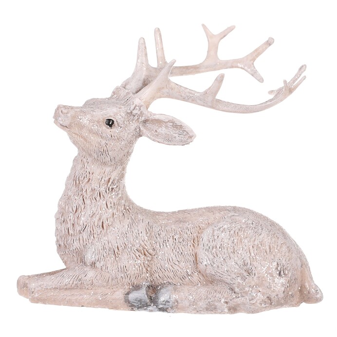 Jelen - polyresinová figurka, sedící, vel. M, bílý
