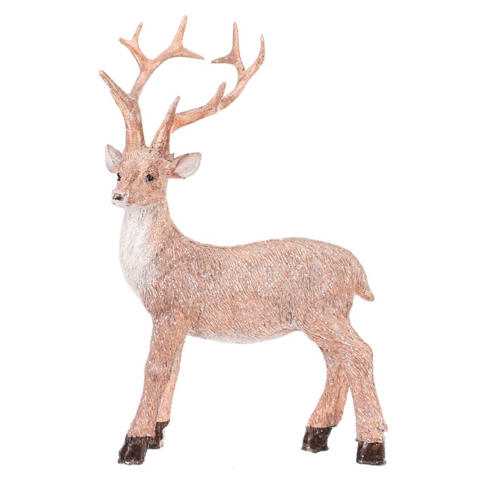 Zvířecí figurka jelena z polyresinu vám dokonale oživí sváteční prostor, ať už na stole, poličce, nebo jiném viditelném místě. Vytvořte si díky němu pohádkové zvířecí království společně s dalšími figurkami ať už jelenů, nebo dalších druhů, které nabízíme. Je hnědý s krásně tvarovaným parožím a doplněný jemnými třpytkami, což umocní kouzelnou sváteční atmosféru.