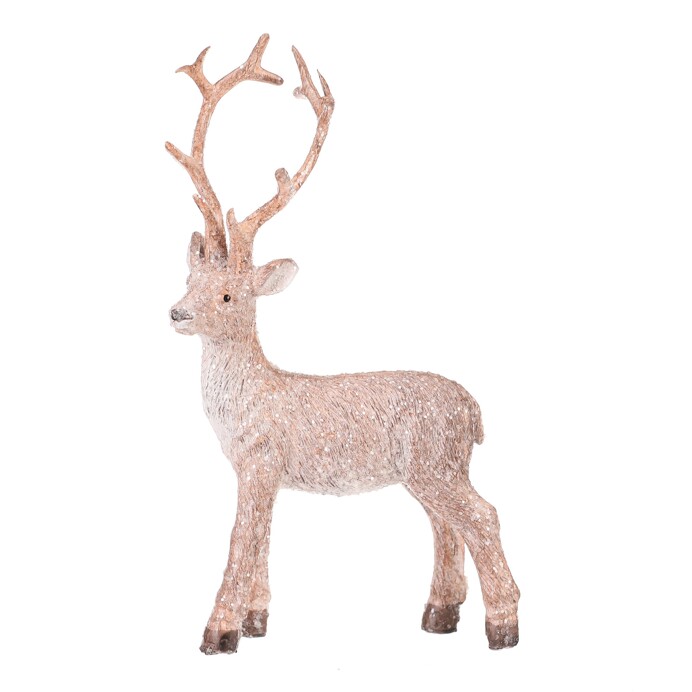Zvířecí figurka jelena z polyresinu vám dokonale oživí sváteční prostor, ať už na stole, poličce, nebo jiném viditelném místě. Vytvořte si díky němu pohádkové zvířecí království společně s dalšími figurkami ať už jelenů, nebo dalších druhů, které nabízíme. Je hnědý s krásně tvarovaným parožím a doplněný jemnými třpytkami, což umocní kouzelnou sváteční atmosféru.