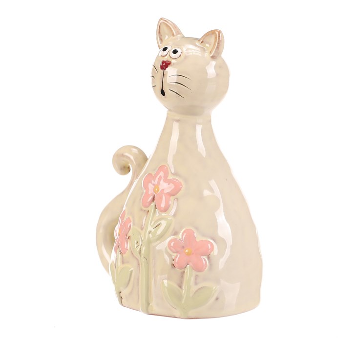 Keramická figurka kočky v žluto-zeleném provedení s jemně modelovanými květinami na těle přináší do interiéru hravý a dekorativní prvek. Její hladký lesklý povrch zvýrazňuje detaily obličeje a elegantně zatočený ocas. Velikost M umožňuje umístění na poličku, komodu nebo okenní parapet, kde vynikne jako originální doplněk. Figurku lze snadno kombinovat s dalšími dekoracemi pro vytvoření příjemné atmosféry.