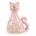 Kočka - keramická figurka, dekor květin, vel. S, růžová