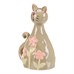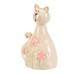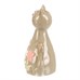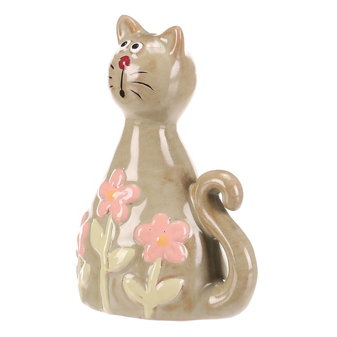 Keramická figurka kočky v zeleném odstínu zdobená růžovými květy přináší do interiéru jemný dekorativní prvek. Její hladký povrch s lesklou glazurou zvýrazňuje detailní zpracování a tvarovanou ocasní část. Figurka je určena k postavení na rovný povrch, kde vynikne jako součást květinové dekorace nebo samostatný doplněk. Díky pevnému keramickému materiálu je vhodná pro dlouhodobé vystavení v interiéru.