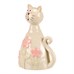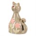 Kočka - keramická figurka, dekor květin, vel. S, zelená
