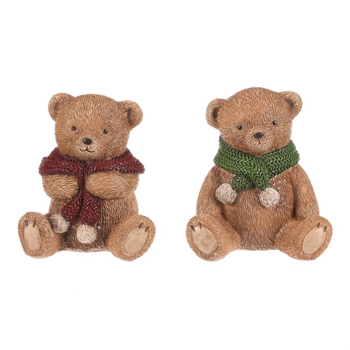 Roztomilý medvěd se šálou kolem krku vnese do vašeho domova veselou a hravou atmosféru. Tato polyresinová figurka je dostupná ve dvou variantách, přičemž se liší svou polohou a barvou šály. Jedná se tak o ideální dekoraci pro vánoční výzdobu, která krásně doplní sváteční atmosféru.