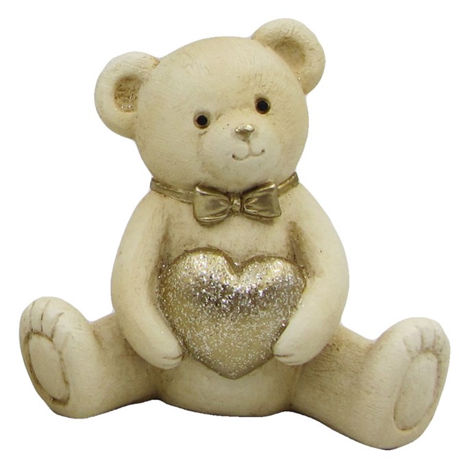 Medvěd se zlatým srdcem - figurka z polyresinu, krémový