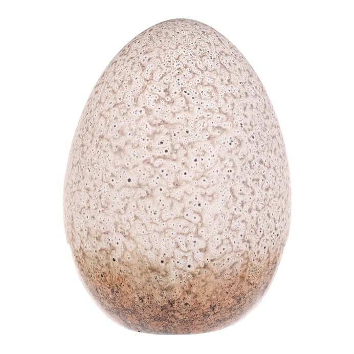 Keramické vajíčko ve velikosti S zaujme svým kropenatým krémovým provedením, které dodává dekoraci přirozený a jemný vzhled. Jeho hladký povrch s mírně nepravidelnou strukturou povrchu vytváří zajímavý vizuální efekt, který se hodí do různých stylů interiérů. Díky kvalitnímu keramickému materiálu je snadné jej udržovat a umístit na poličku, stůl či do vitríny jako součást dekorativní kompozice. Vajíčko je vhodné pro vytvoření přírodní atmosféry v domácnosti nebo kanceláři.