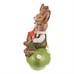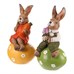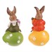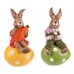Dekorativní soška zajíce sedícího na vajíčku je vyrobena z kvalitního magnesia, které zajišťuje pevné a detailní provedení. Každý zajíc je ručně malovaný v přírodních hnědých tónech s barevnými doplňky – oranžové šaty s mrkví nebo zelené kalhoty s fialovými tulipány. Sošky jsou vhodné k jarní či velikonoční výzdobě interiérů, kde přinesou hravý a veselý akcent. Díky pevnému materiálu se snadno udržují a jsou vhodné pro dlouhodobé vystavení na poličce či komodě.