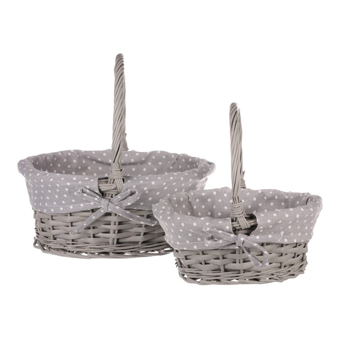 Koš proutěný - s uchem, šedý, s látkou, cena za sadu 2 ks
