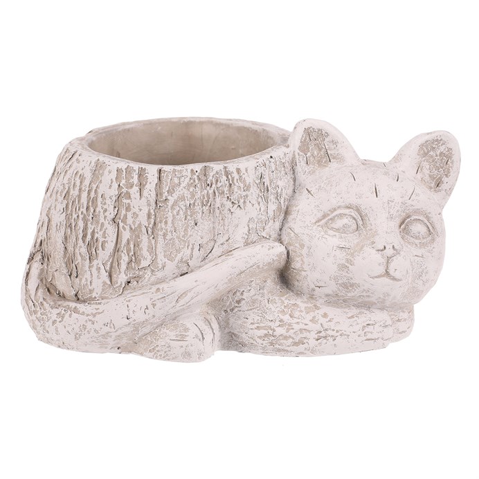 Obal na květiny - beton, kočka, vel. M, šedo-bílý