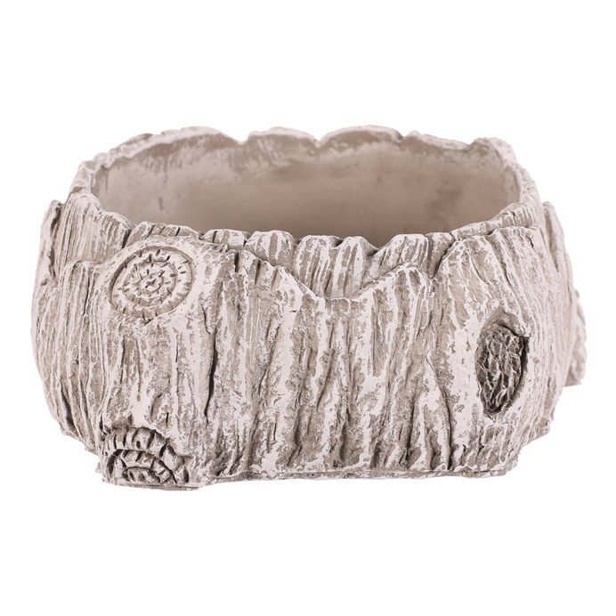 Obal na květiny z betonu v šedo-bílém odstínu připomíná přírodní pařízek s detailním reliéfem kůry a letokruhů. Jeho robustní provedení zajišťuje stabilitu a dlouhou životnost, přičemž betonový materiál se snadno udržuje a odolává povětrnostním vlivům. Větší rozměr umožňuje umístění různých druhů rostlin, ať už venku na terase nebo uvnitř interiéru. Design s přírodní texturou dodává prostoru rustikální charakter a vizuální efekt připomínající skutečné dřevo. Obal je vhodný pro květiny i dekorativní aranžmá.