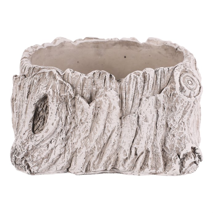 Obal na květiny z betonu v šedo-bílém odstínu imituje strukturu pařízku, čímž přináší přírodní vzhled do interiéru i exteriéru. Jeho robustní provedení zajišťuje stabilitu a dlouhou životnost, zatímco detailní textura povrchu věrně napodobuje dřevo s výraznými letokruhy a uzly. Střední velikost umožňuje umístění různých druhů rostlin a květin, přičemž betonový materiál se snadno udržuje a odolává povětrnostním vlivům. Obal je vhodný pro použití na terasách, balkonech i v zahradách, kde podtrhne přírodní atmosféru prostoru.
