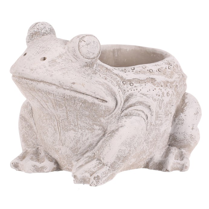 Obal na květiny - beton, žabka, vel. M, šedo-bílý