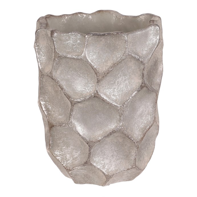 Váza betonová - vzor buněk, stříbrno-šedá
