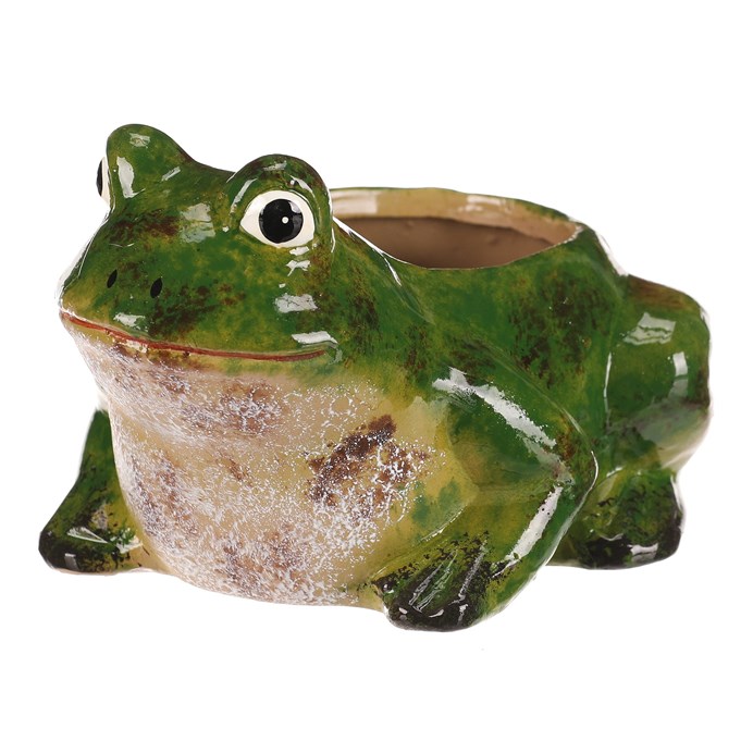 Obal na květiny - žába, keramika, barva zelená