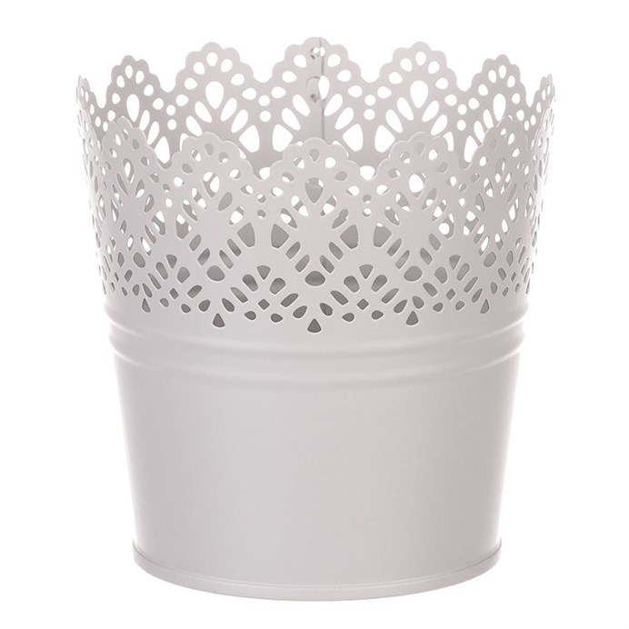 Chcete si udělat radost nevšedním vyzdobením vašeho oblíbeného prostoru květinami, a dochází vám nápady do čeho je vsadit? Zkuste sáhnout po této jedinečné dekoraci v podobě kovového obalu na květiny v šedé barvě s krajkovými okraji a nebudete litovat. Díky svému tvaru a vzhledu se tento kovový obal stane okouzlujícím doplňkem pro vaše květiny. Kombinace krásných rostlin zasazených do takto zdobené a tvarované dekorace spolu vytvoří jedinečnou kompozici. Při pohledu na tuto vámi vytvořenou krásu budete na sebe hrdí a mít skvělý pocit z dobře odvedené práce. Přineste si do svého domova prvek originality s tímto nevšedním kovovým obalem na květiny, který okouzlí každého obdivovatele rostlin a skvěle oživí váš prostor.