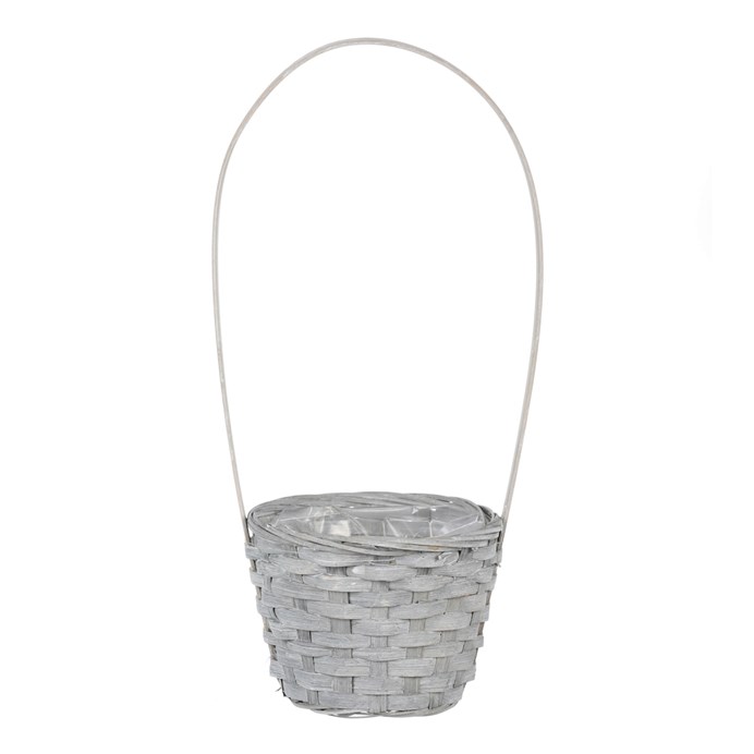 Obal na květiny - kulatý, bambusové proutí, igelitová vložka, šedý