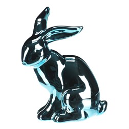 NovinkaZajíc - figurka z porcelánu, vysoký lesk, vel. L, barva modrá