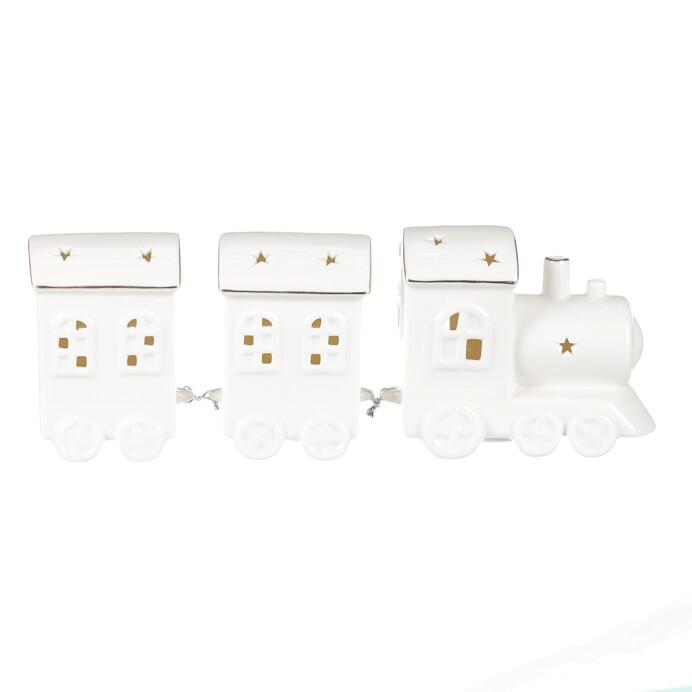 Vláček s vagónky - porcelán, LED osvětlení, barva bílá