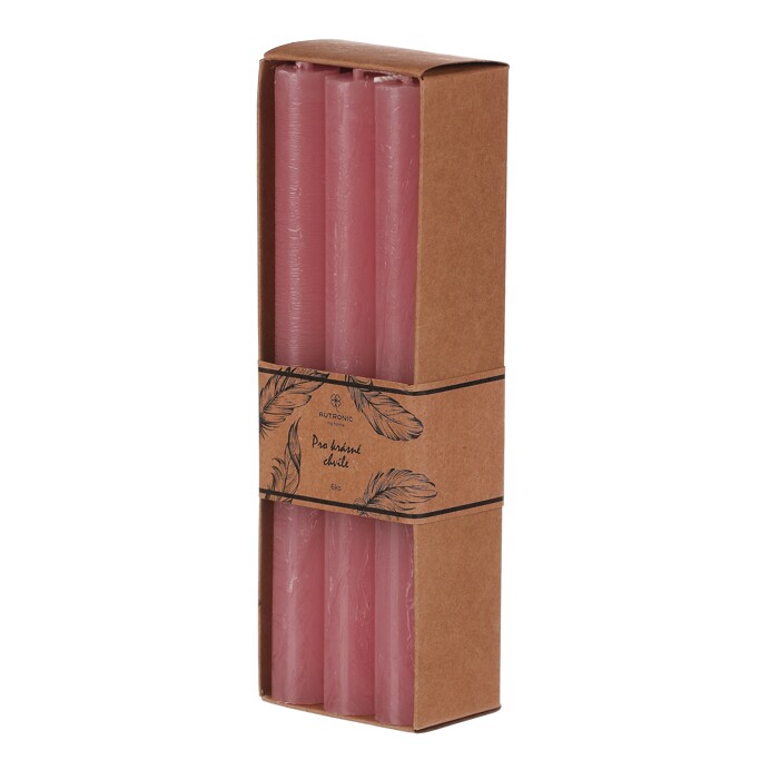 Svíčka kónická - parafín, růžová, cena za krabičku (6 ks)