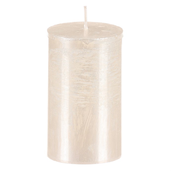 Vytvořte si kouzelnou atmosféru díky naší elegantní sloupcovité svíčce v bílé barvě. Má průměr 6 cm a výšku 10 cm, je vyrobena ze stoprocentního parafínového vosku a má metalický povrch. Svým provedením a bez vůně, je ideální volbou pro slavnostní chvíle, svátky nebo jen nezapomenutelné romantické chvíle. S dobu hoření až 45 hodin nabízí dlouhotrvající neodolatelný světelný efekt, který vynikne zejména za dlouhých zimních večerů. Upozornění: Udržujte svíčku, zejména zapálenou, mimo dosah dětí!
