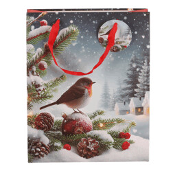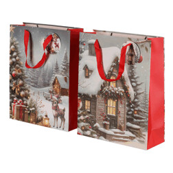 Taška papírová - zimní krajina, mix 2 druhů, vel. M, cena za 1 ks
