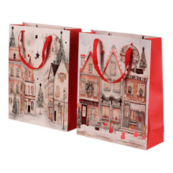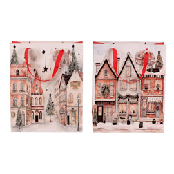 Taška papírová - Vánoce ve městě, mix 2 druhů, vel. M, cena za 1 ks