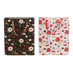 Taška papírová - vánoční vzor, mix 2 druhů, vel. M, cena za 1 ks