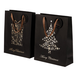Taška papírová - černá se zlatým vzorem, mix 2, vel. M, cena za 1 ks