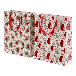 Taška papírová - vánoční vzor, vel. M, mix 2 druhů, cena za 1 ks